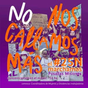 Convocamos a acompañar la marcha hoy jueves 25 de noviembre a las 16 horas que irá desde el Mástil de la Avenida Mitre hasta la Plaza 9 de Julio, junto a las organizaciones que luchan por los derechos de las mujeres y las diversidades.