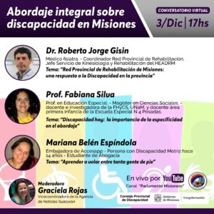Se trata de un conversatorio virtual donde participarán especialistas y referentes de diferentes espacios institucionales para realizar esta propuesta cuyo título es “Abordaje integral sobre discapacidad en Misiones”.