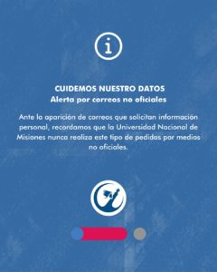 Les recordamos que la Universidad Nacional de Misiones nunca solicitará información personal a través de correos o cuentas que no sean institucionales.