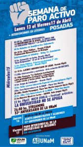 De la conferencia participaron el decano de la FHyCS-UNaM, Esp. Cristian Garrido; la vicedecana, Dra. Zulma Cabrera; el Prof. Rubén Stasuk (ADUNAM); el Lic. Hernán Cazzaniga (UDUM); José Vallejos y Lía Ethel Rojo (APUNAM); y el referente nacional de FATUN, Walter Merkis.